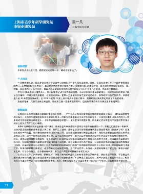 进入前 20 荣获最佳展示奖。在 2018 年的第 33 届上海市青少年创新大赛中,我的科技创新成果也取得了不错的成绩。