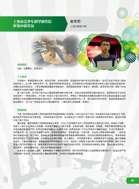 为这样的人。从小学、初中到高中,我一直参与科技创新类活动,深深感受到科技创新对自身综合能力提升的强大促进作用。
