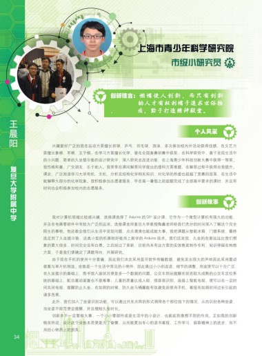 创新故事 年科学研究院小研究员,宝山青少年科学研究院理事会成员。2018 年当选为宝山青少年科学研究院理事会副理