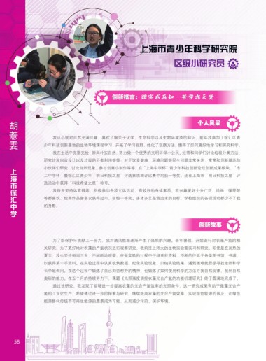 我从小就对自然充满兴趣,喜欢了解关于化学、生命科学以及生物环境类的知识,前年我参加了徐汇区青 个人风采