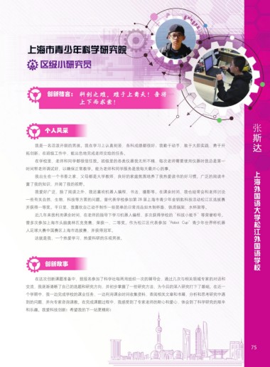 曾多次参加上海市头脑奥林匹克竞赛,荣获一、二等奖。作为松江区代表参加“Robot Cup”青少年世界杯机器