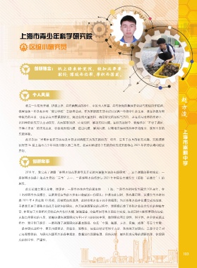 有多大兴趣。进入奉贤区实验中学后,一次偶然机会改变了我对它的态度。学校科技辅导员张老师推荐我去参加 我曾连续三年参加乡村“假日学校”志愿者活动。作为班级团支部书记以及高一年级学生会主席,我在积极为同