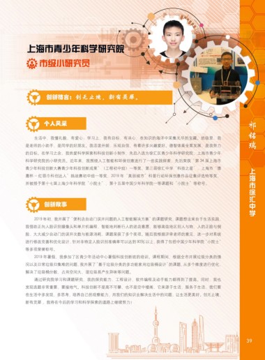 科学研究院的小研究员。近年来,我围绕人工智能和环保创意进行了一些实践探索,先后荣获“第 34 届上海市