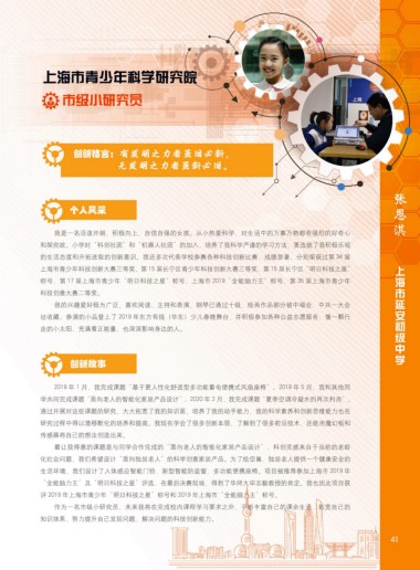 称号、第 17 届上海市青少年“明日科技之星”称号、上海市 2019“全能脑力王”称号、第 35 届上海市青少年