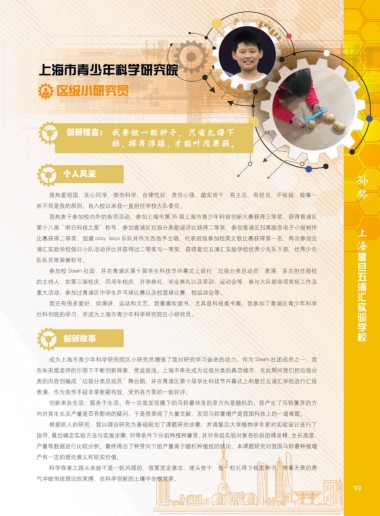 社科创班的学习,并成为上海市青少年科学研究院区小研究员。