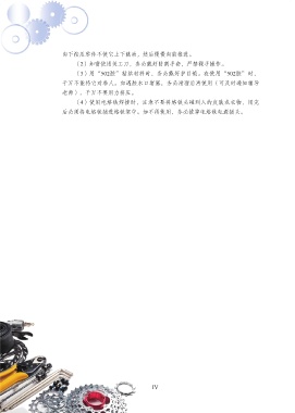 向下按压零件不使它上下 动, 后 向前 进。 (2)如需使用 工 ,务必 , 作。 (3)用“502 ” 结材料时,务必 。在使用“502 ”时, 不能将它对 人。如 ,务必 理后再使用(可 时通 导 师), 不要用力 压。 (4)使用电 铁焊接时,注意不要将 铁 到人的 或 物,用完 后必须将电 铁插进 铁 中。如不再使用,务必 电 铁电 插 。 IV