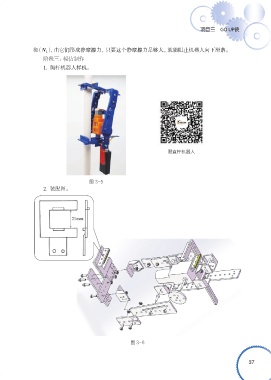 项目三 GO UP侠 和(N ),由它们形成静摩擦力,只要这个静摩擦力足够大,就能阻止机器人向下滑落。 2 阶段三:模仿制作 1. 爬杆机器人样机。 爬直杆机器人 图 3-5 2. 装配图。 图 3-6 37