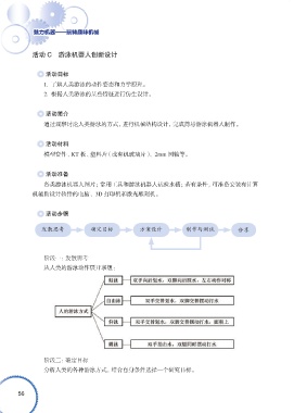 通过观察讨论人类游泳的方式,进行机械结构设计,完成简易游泳机器人制作。