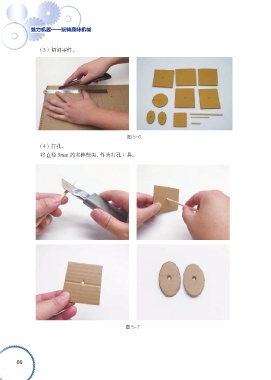 魅力机器——玩转趣味机械 (3) 切割零件。 图 5-6 (4) 打孔。 将直径 5mm 的木棒削尖,作为打孔工具。 图 5-7 66