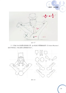 项目五 奇妙装置 图 5-27 (3) 利用 CAD 的绘图功能绘制草图,也可使用矢量图编辑软件(如 Adobe Illustrator) 进行图形绘制,再使用激光切割机按图加工。 图 5-28 81