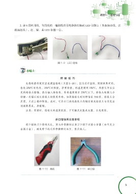 注意:焊接时,烙铁头的温度很高,不可触及皮肤或衣服,以免烫伤。