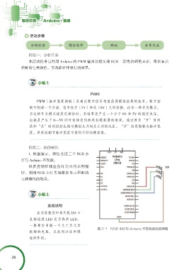 本活动任务是利用 Arduino 的 PWM 输出功能实现 RGB 三原色的调色显示,依次显示