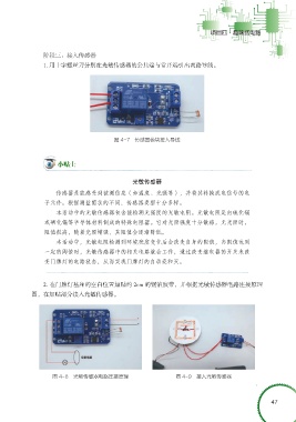 图 4-8 光敏传感器电路连接原理 图 4-9 接入光敏传感器