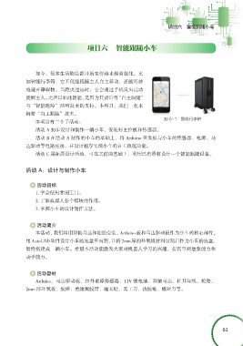 活动 B 在活动 A 制作的小车的基础上,将 Arduino 开发板与小车的传感器、电源、马