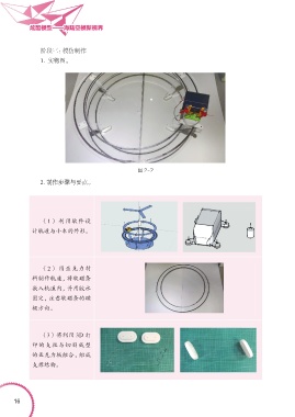 炫酷模型——海陆空模新视界 阶段三:模仿制作 1. 实物图。 图 2-2 2. 制作步骤与要点。 (1) 利用软件设 计轨道与小车的外形。 (2) 用亚克力材 料制作轨道,将软磁条 嵌入轨道内,并用胶水 固定,注意软磁条的磁 极方向。 (3) 将利用 3D 打 印的支柱与切割成型 的亚克力板组合,组成 支撑结构。 16