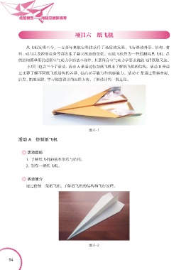 通过仿制一架纸飞机,了解纸飞机的结构和飞行原理。