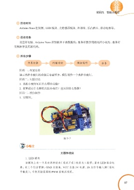 Arduino Nano 控制板、LED 模块、光传感器模块、杜邦线、乐高积木、移动电源等。