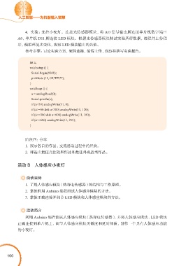 A0,单片机 D11 脚连接 LED 模块。根据光传感器模块测试实验所得数据,编程并上传程