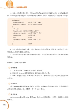 3. 掌握正确连接并调节 RGB 全彩 LED 模块和人体感应模块的方法;设计并制作个性