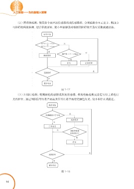人工智能——为机器植入智慧 (2) 障碍物检测:使用多个超声波传感器组成传感器组,分别检测小车正前方、侧前方 与障碍物间的距离,结合算法逻辑,使小车能够及时检测到障碍物并及时采取减速措施。 图 1-17 (3) 红绿灯检测:使用颜色传感器或灰度传感器,指向性地检测交通信号灯上彩色灯 光的位置,通过判断信号灯是否亮起及信号灯是否亮指定颜色灯光,使小车停止或前进。 图 1-18 14