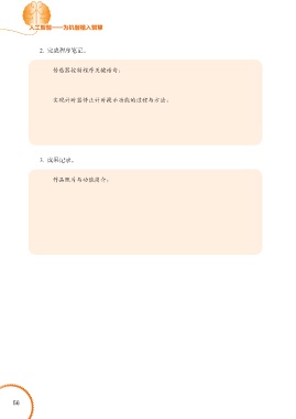 人工智能——为机器植入智慧 2. 完成程序笔记。 传感器控制程序关键语句: 实现计时器停止计时提示功能的过程与方法: 3. 成果记录。 作品照片与功能简介: 56