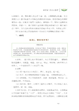 (1)将一碗不同大小的麦片、薯片、粗盐等,摇一摇。
