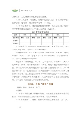 你对食物的感觉是否有差异?填写记录表(见表1)。