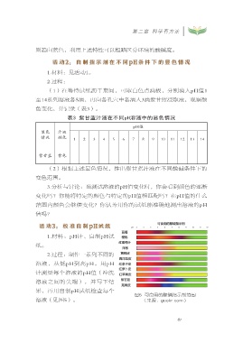 3.分析与讨论:当测试溶液的pH值变化时,你会看到颜色的逐渐