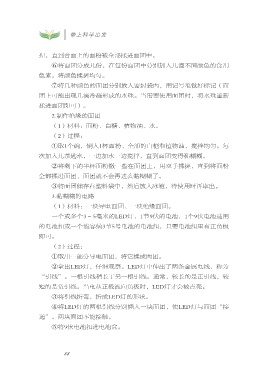 ④将LED灯的两根引线分别插入一块面团,使LED灯与面团“接