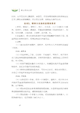 1.材料:玻璃片、塑料片、纸片、木头皮,大小为5厘米×5厘