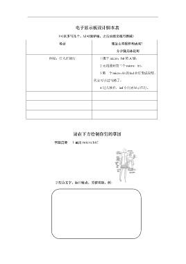 电子显示板设计脚本表 (可以多写几个,尽可能详细,之后班级交流再删减) 场景 想怎么样操作和表现? 分步骤具体说明 例如:行人红绿灯 1 摁下 micro:bit 的 A 键, 2 无线通知第二个 micro:bit。 3 第二个 micro:bit 的 led 小灯变成绿灯, 代表可以过马路了。 4 过几秒后,led 小灯再显示红灯。 请在下方绘制你们的草图 草图需要 1 画出 micro:bit! 2 配合文字,标出特点,关键功能,例:
